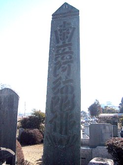 石塔婆(寅子石) 唯願法師が親鸞の弟子の真仏法師の報恩供養らために1311年に建てた。「南無阿弥陀仏」と彫られている。高さは約4メートルで埼玉県下2番目の石塔婆だそうです。 ちなみに1番は長瀞の石塔婆で日本一です。 |